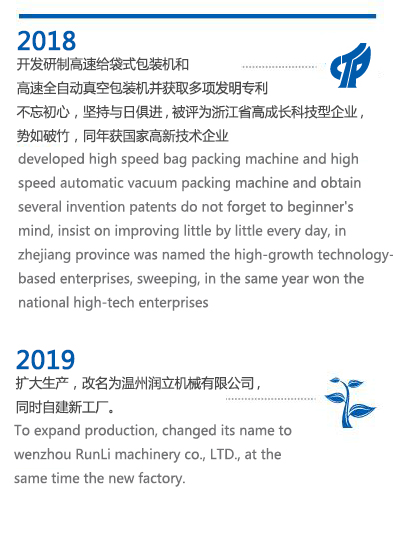 一直以來潤力人以高科技、高標(biāo)準(zhǔn)、高品質(zhì)為目標(biāo),不斷學(xué)習(xí)先進(jìn)、不斷創(chuàng)新、研發(fā)制造出性能良好、易操作、易維護(hù)、穩(wěn)定性強(qiáng)、集自動化為一體的全自動充填包裝機(jī)系列。